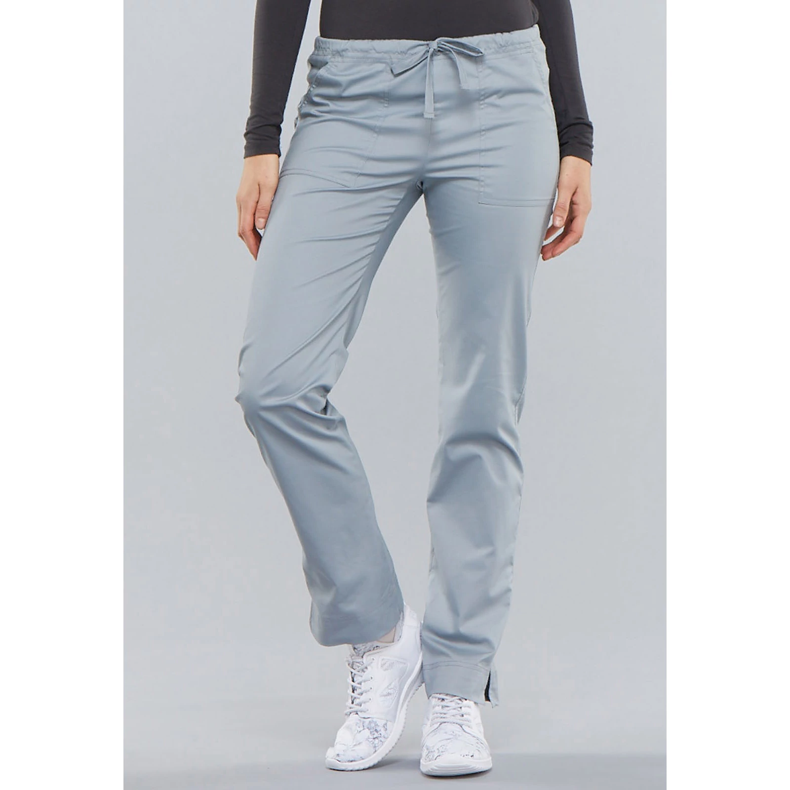 Cherokee Woman's Mid Rise Slim Straight Drawstring Pant 4203-GRYW - Grey