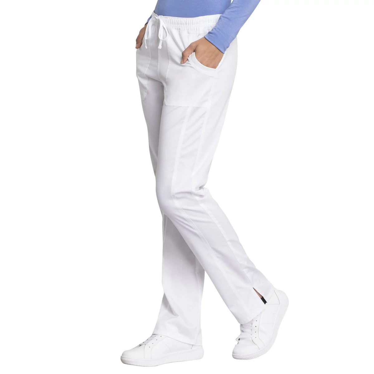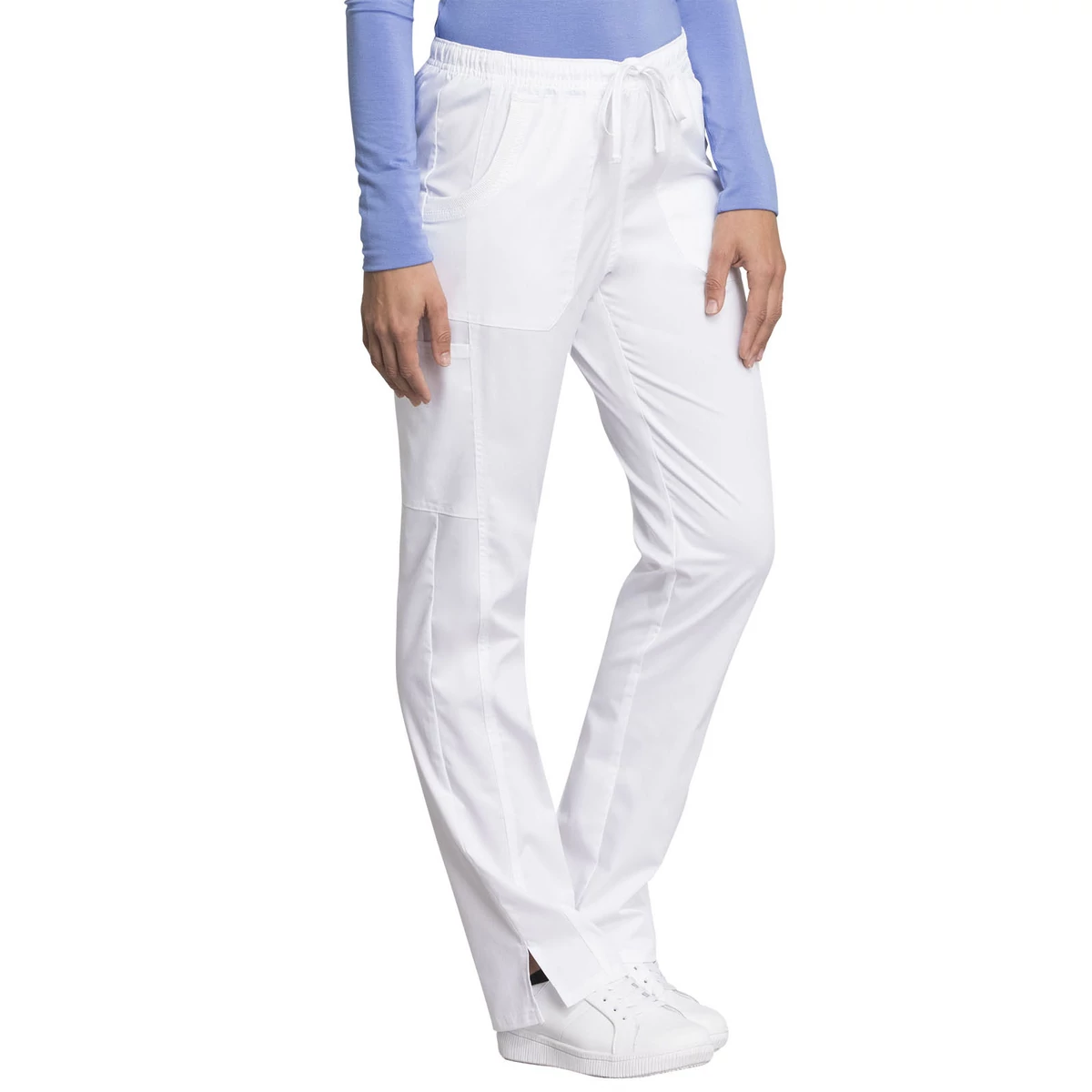 Cherokee Woman's Mid Rise Straight Leg Drawstring Pant WW235AB-WHT - White