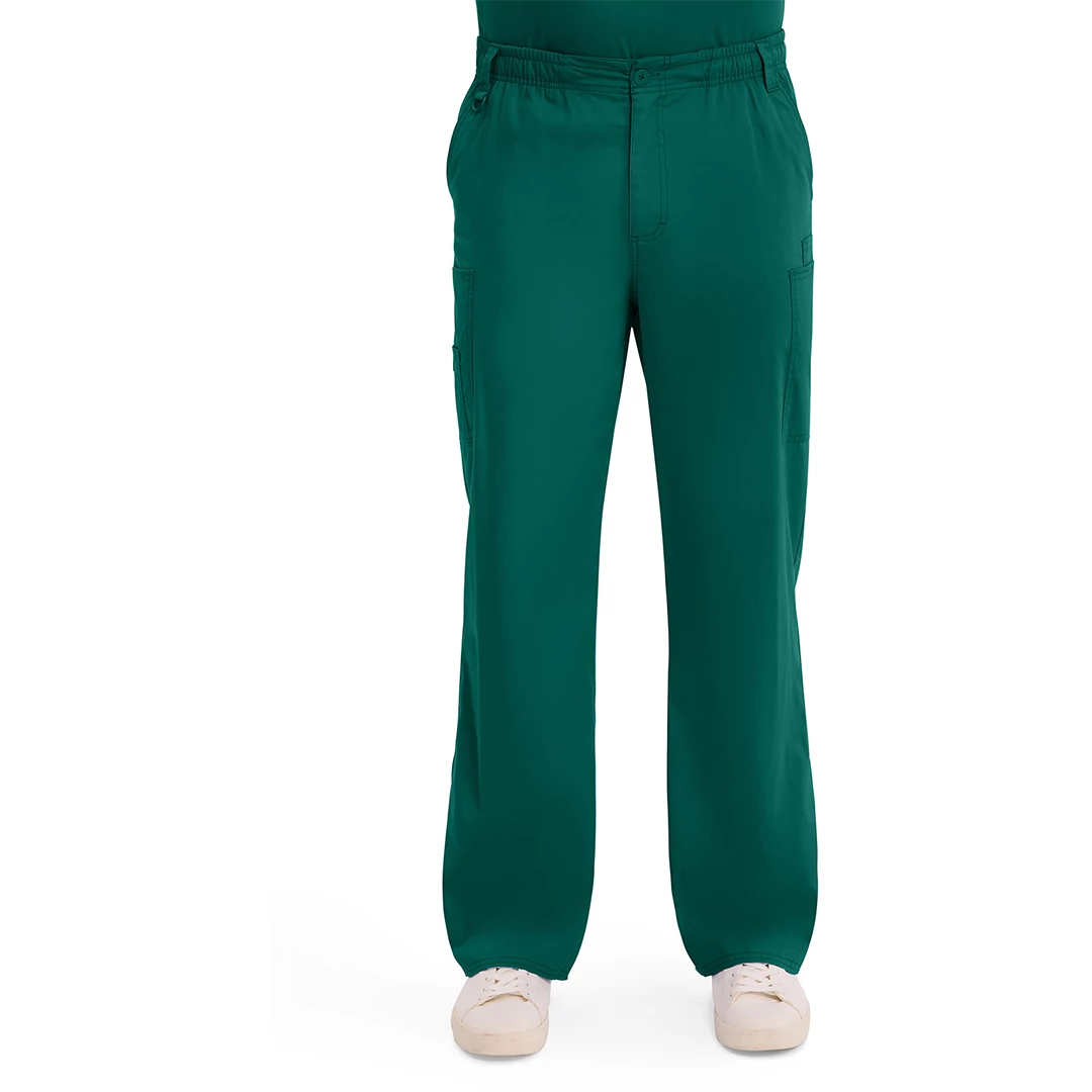 Men’s zip fly pull-on pant features an all around elastic waistband with a button closure, an adjustable interior drawstring and Dickies logo twill tape on the inside back waistband. Also featured are slash pockets, cargo pockets and a back pocket with a hook and loop fastener for security, a D-ring on right front belt loop and double-needle topstitching throughout.