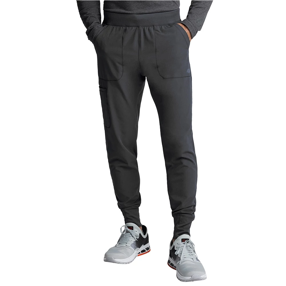 This Men's fit, sporty tapered leg jogger features pull-on styling, with a natural rise, a rib knit elastic waistband with an inside functional drawstring. Additional design details include two front pockets, one back welt pocket, one side welt cargo pocket, rin knit bottom cuffs, and a Dickies tonal label.