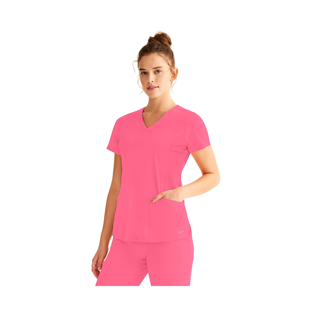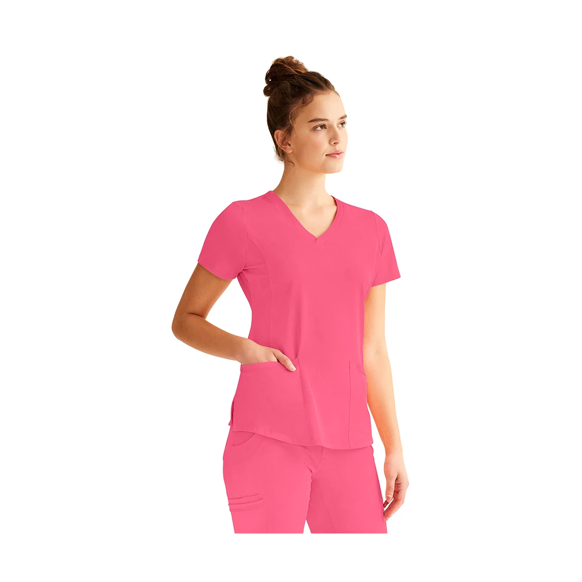 Healing Hands Woman's V-neck Top 2500-CAAPI - Carnation Pink