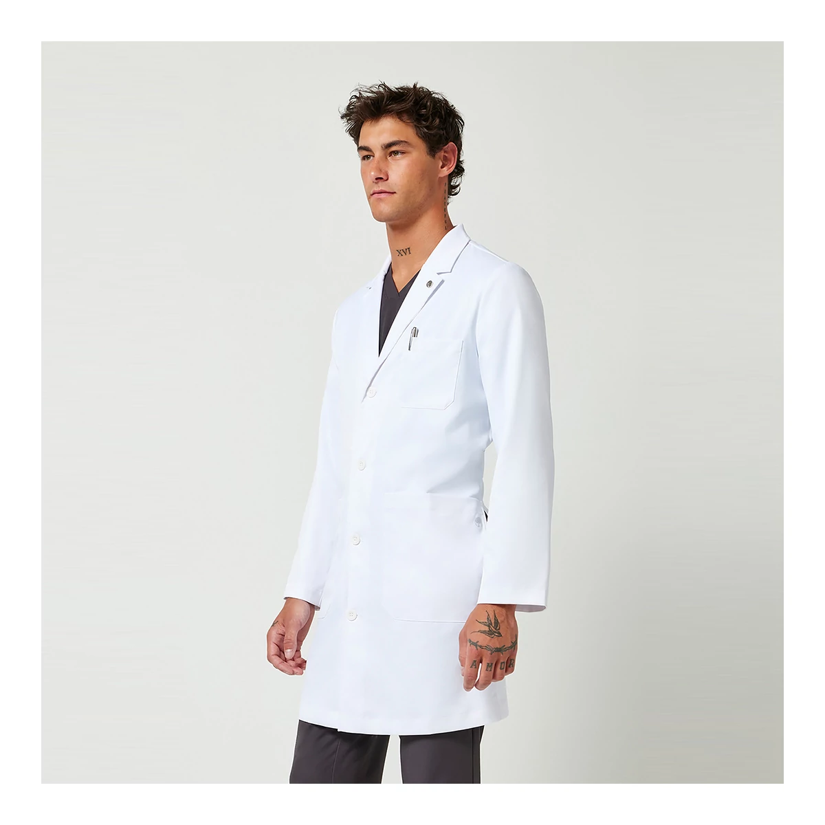 For a simple professional style, look no further than the Luke Coat. This men¿s doctor¿s coat is minimalist in form ¿ but it doesn¿t skimp on function. The notched lapel and four-button closure keep your look classic, while the stretchy fabric wicks away moisture and keeps you feeling great all day and night. The Luke Coat features three outer pockets, including a dedicated space for your phone, and two inner pockets. In addition, side slits make it simple to access your pants pockets, too.